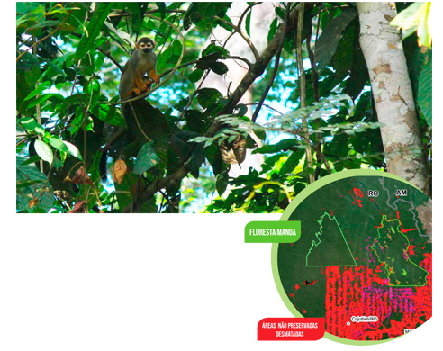A área florestal da MANOA é contígua a áreas públicas, como as Florestas Nacionais do Jamari, Jacundá e Reserva Samuel, formando um grande bloco florestal de aproximadamente 480 mil hectares. A manutenção desse bloco é importante para a conservação das mais diversas espécies de fauna e flora do estado de Rondônia e também da Amazônia Brasileira. No mapa, vemos o quanto podem ser desmatadas áreas não protegidas legalmente como a Floresta MANOA.